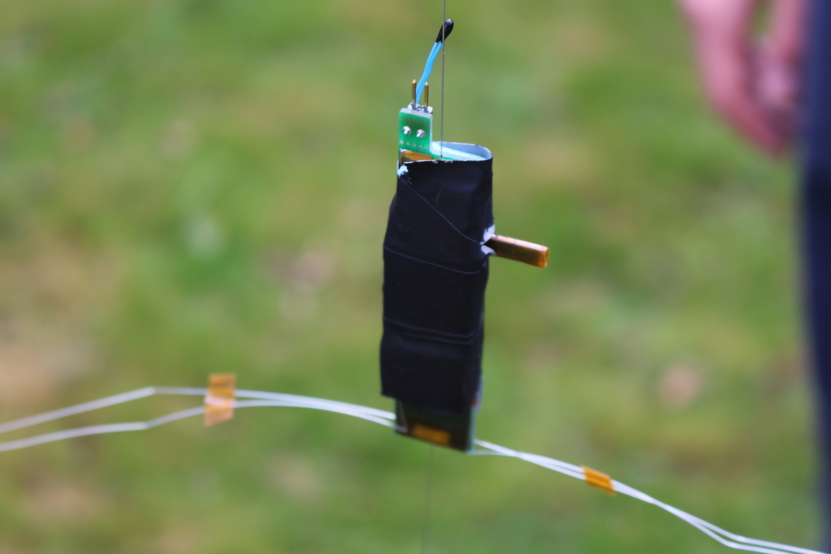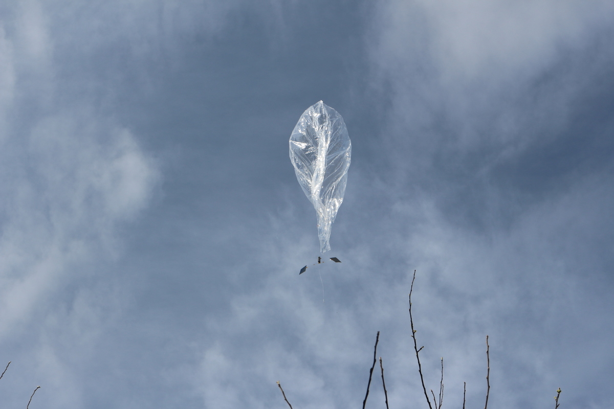 Like UBSEDS14, the UBSEDS15 balloon was built from 50 micron thick PA-EVOH-PE multilayer film and was 1.5 meters in diameter. The payload weight was 20 grams. We used slightly more helium than for UBSEDS14; combined with about 3 grams of deadweight (including the fill inlet) this resulted in 17.2 grams of free lift. This initial float altitude was 11.4km (37,000 ft).