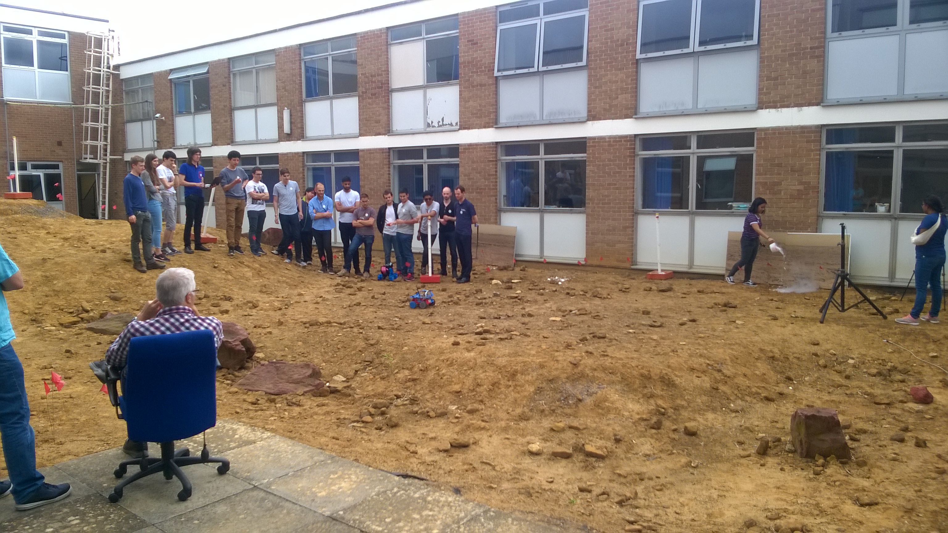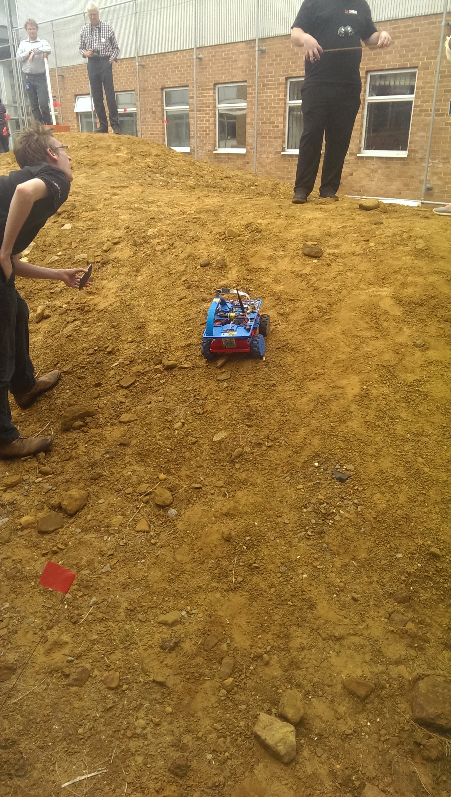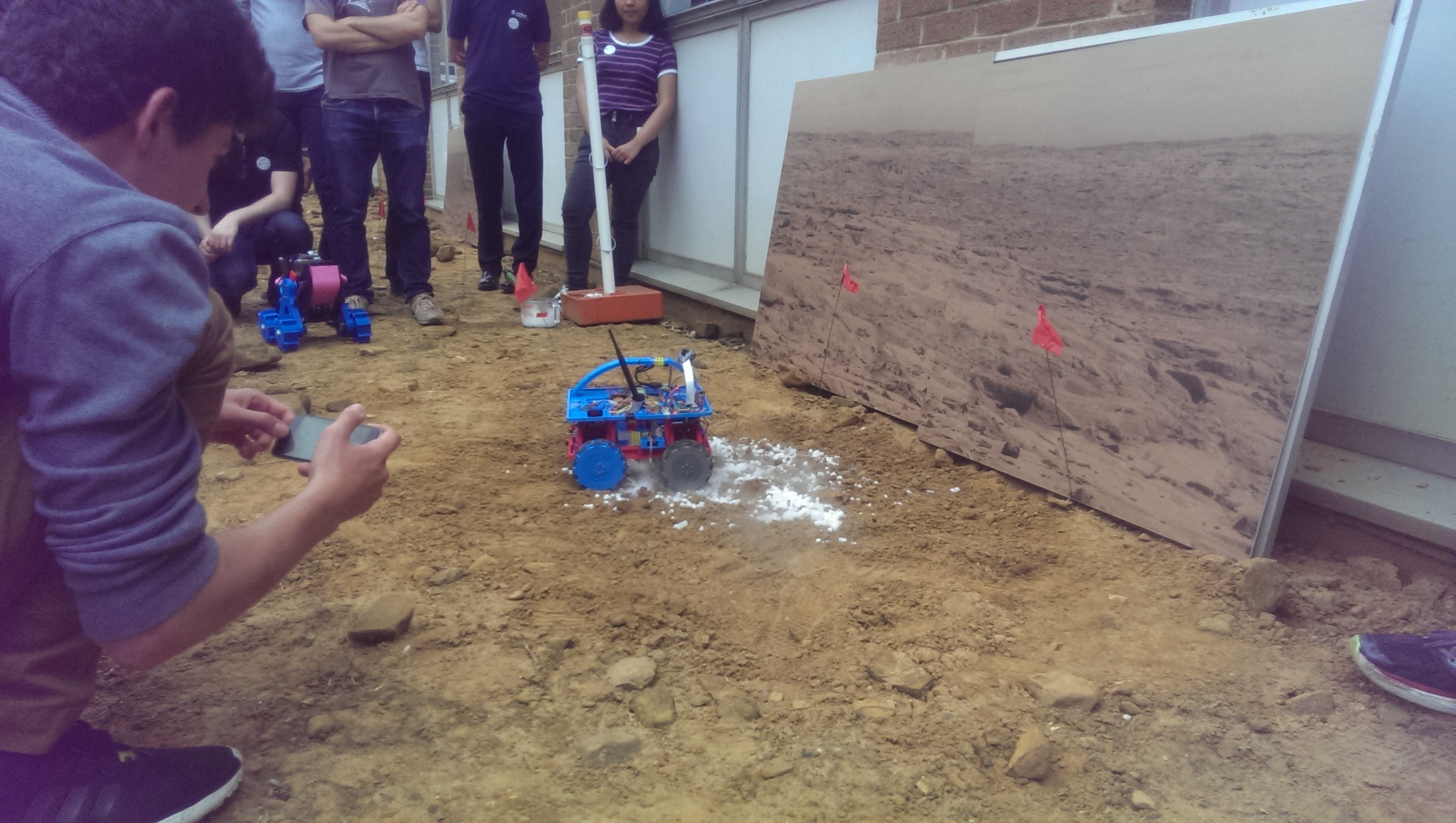 Each rover was tasked to drive to the sample over the rocks and hills of the Mars Yard at RAL Space, collect the sample and return to the starting point. Points were awarded based on how close the rover got to the sample and how much sample was collected.
