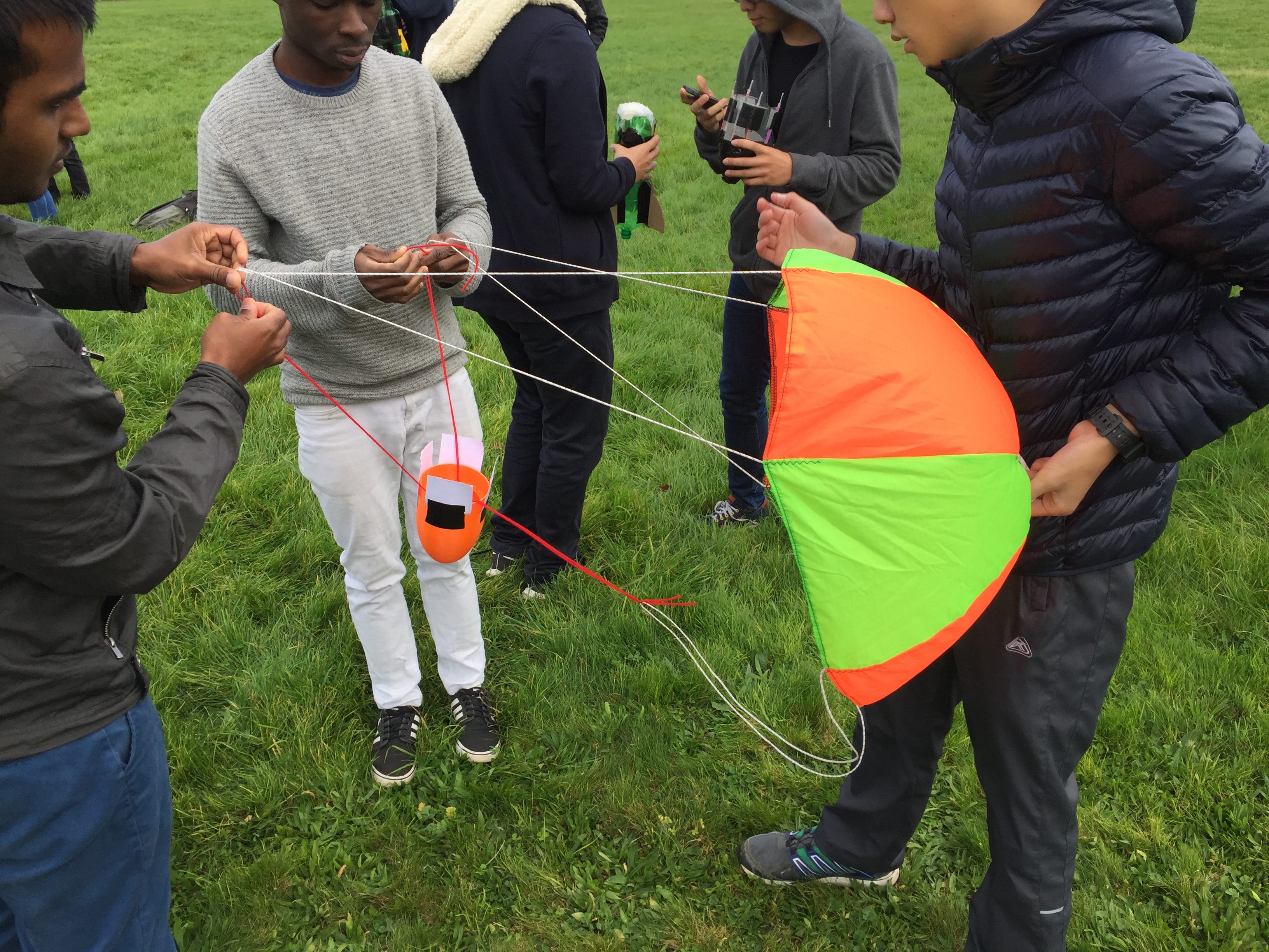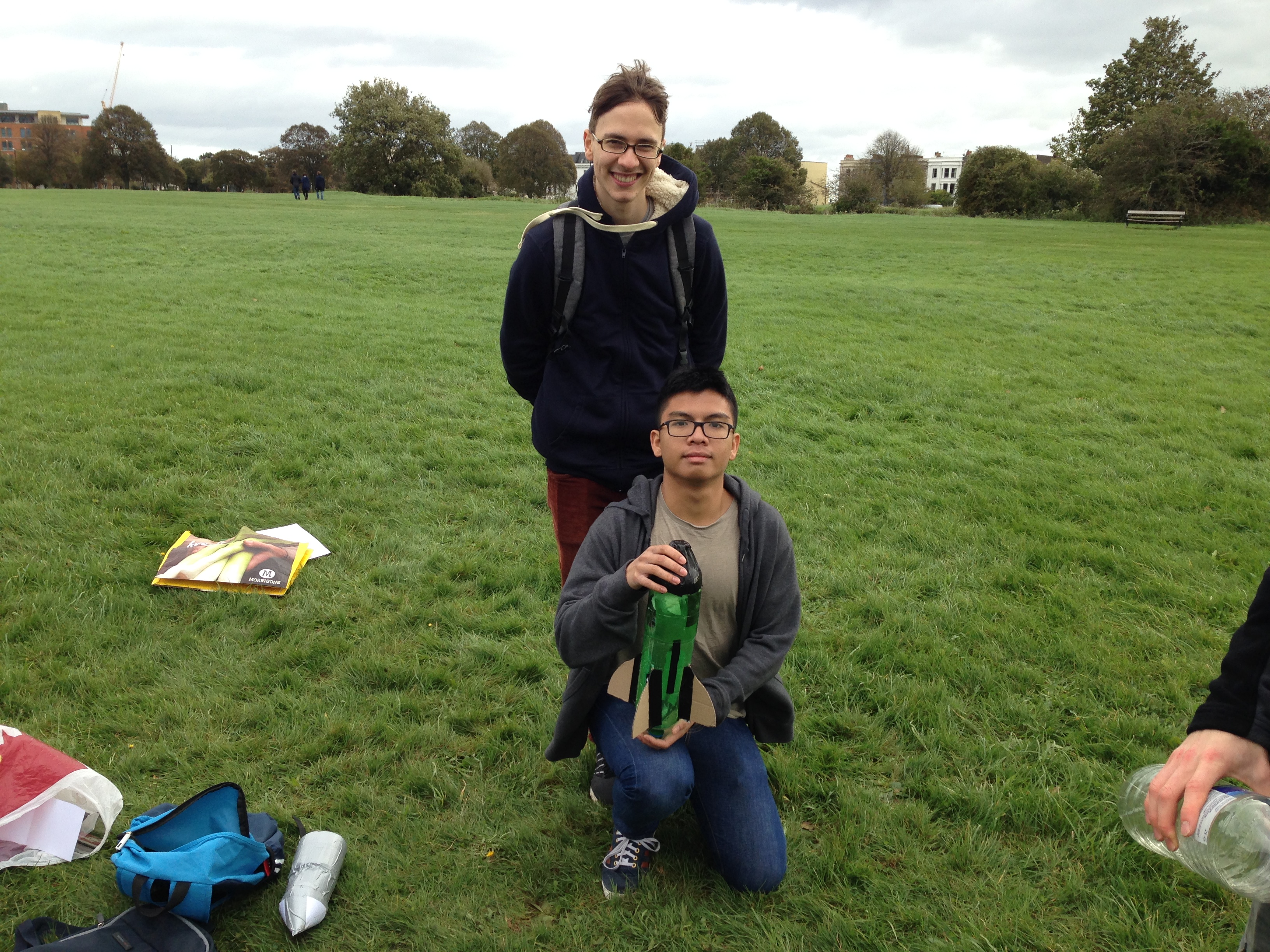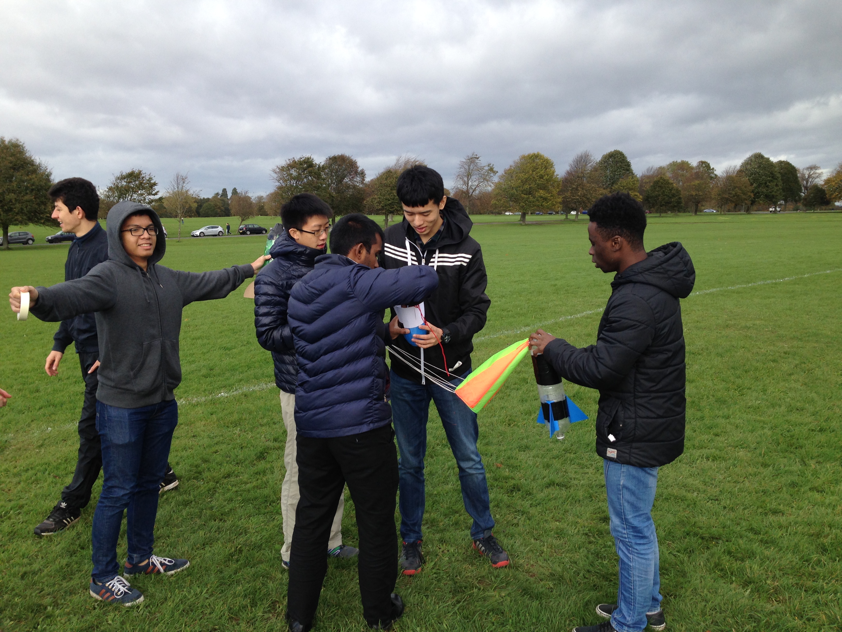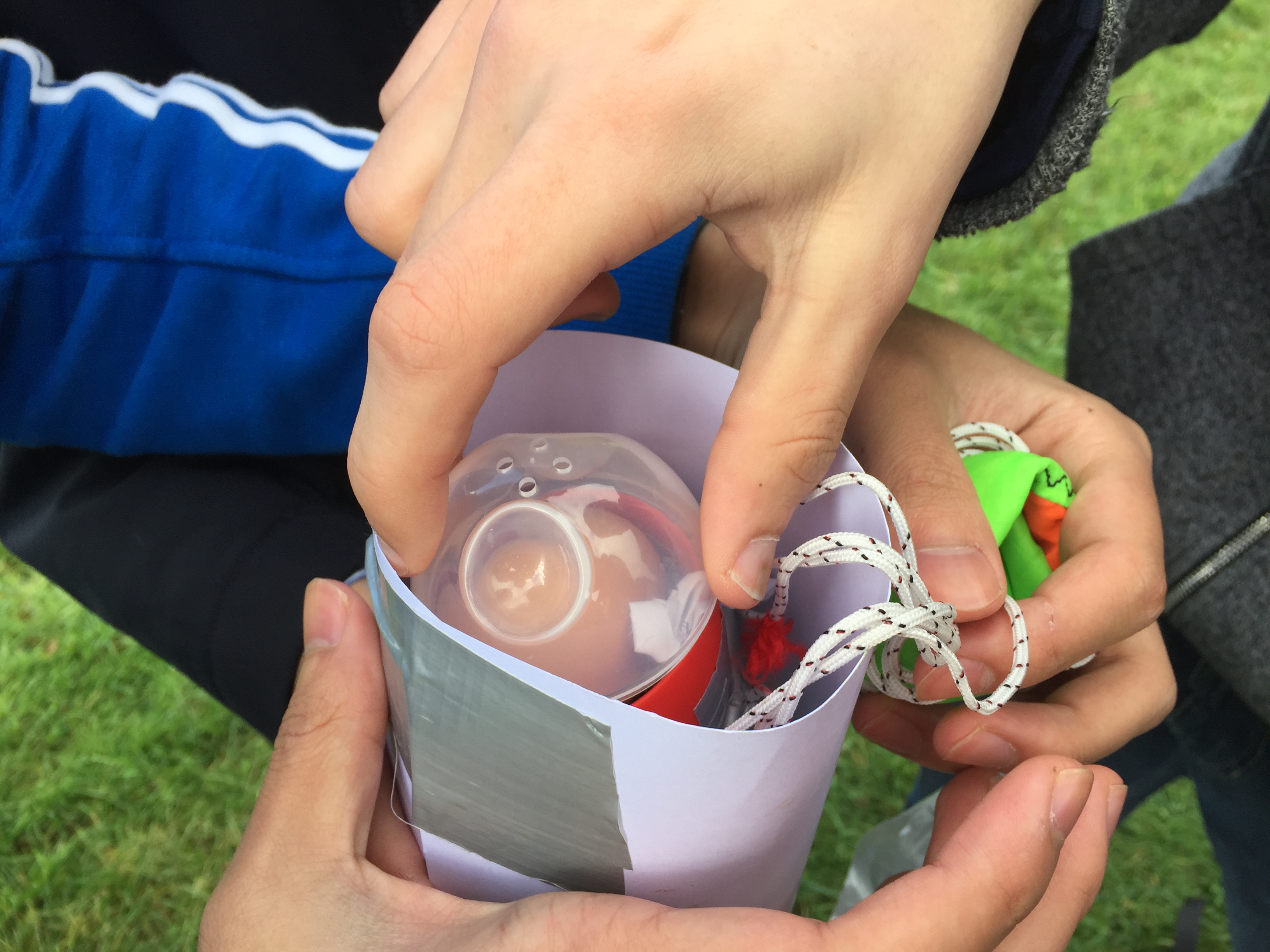 Our competitors were given four weeks to build their rockets from the kick off meeting to final launch day, with a test launch day a week before the end of the competition. In the intervening time the teams had to select their pressure vessel (2L lemonade bottle), choose their stabilisation fins (cardboard triangles), and design a nose cone (cardboard cone taped to the bottle). Teams showed an enormous amount of ingenuity, going well beyond this base standard with some groups using 3D printers to manufacture their nose cones and fins, others modifying the standard 2L bottles to increase their capacity and still others experimenting with alternate propellants; using carbonated drinks as propellant instead of tap water.